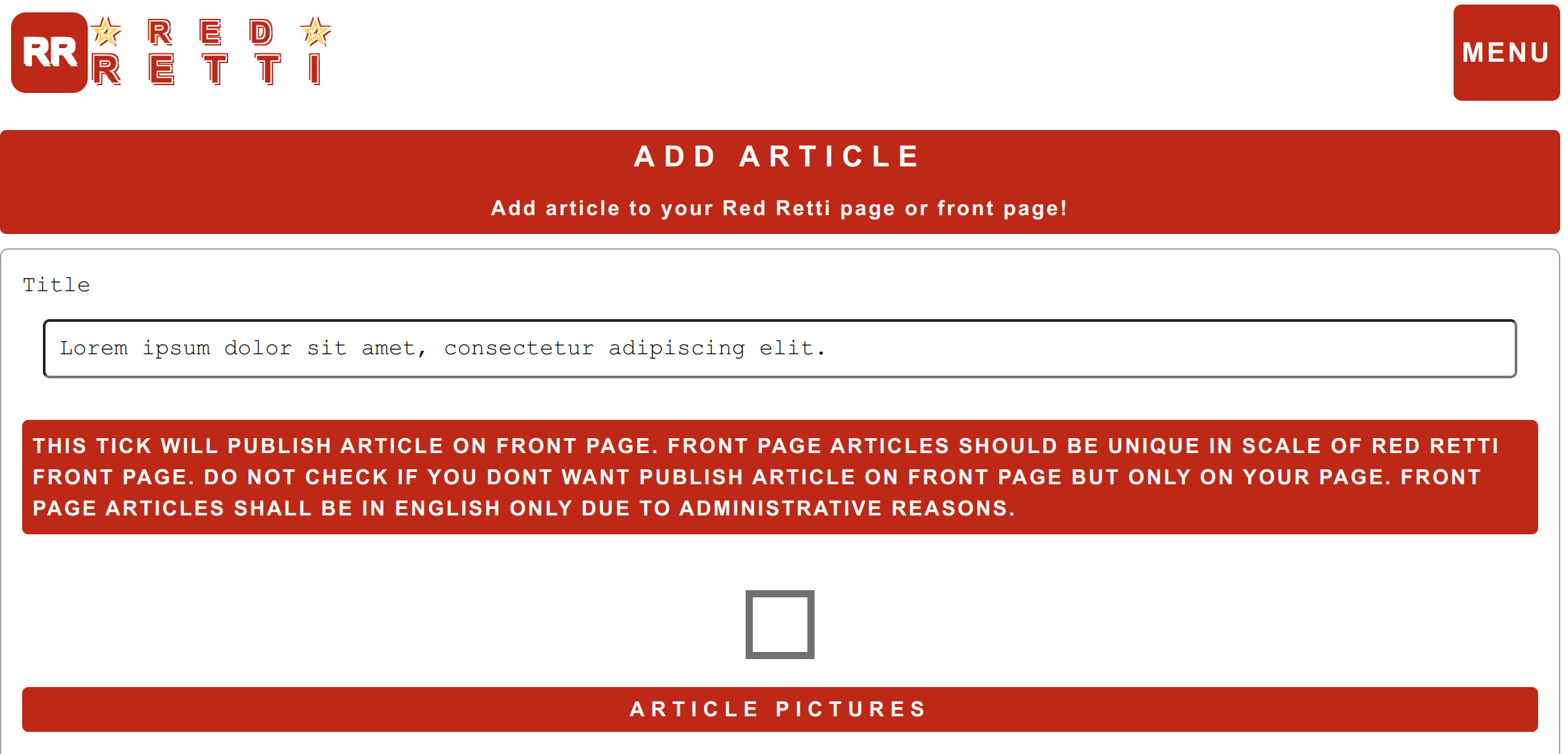 This is a Red Retti Test Account, created for test purposes of Red Retti.