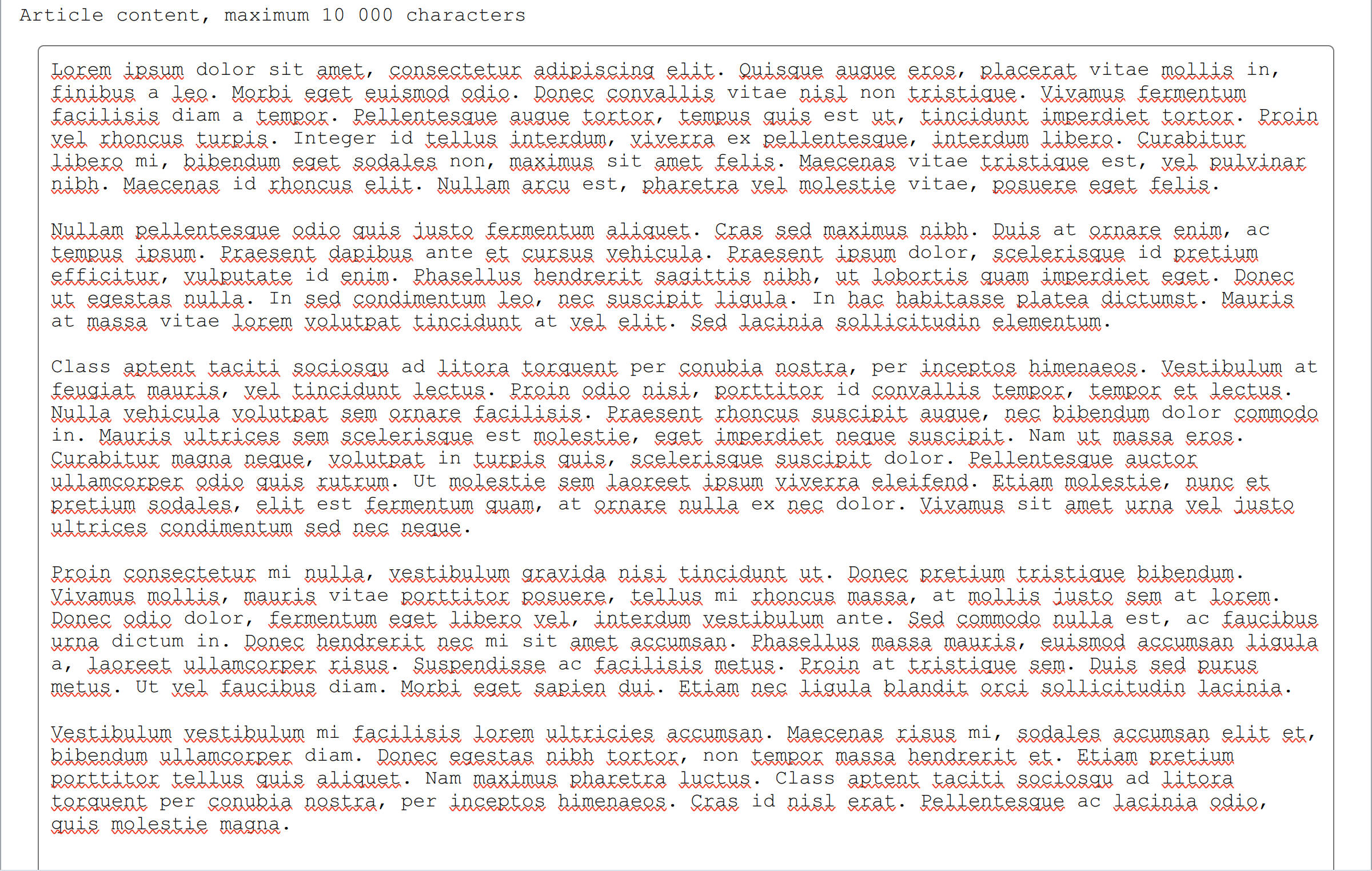 Lorem ipsum dolor sit amet, consectetur adipiscing elit. Quisque augue eros, placerat vitae mollis in, finibus a leo. Morbi eget euismod odio. Donec convallis vitae nisl non tristique. Vivamus fermentum facilisis diam a tempor. Pellentesque augue tortor, tempus quis est ut, tincidunt imperdiet tortor. Proin vel rhoncus turpis. Integer id tellus interdum, viverra ex pellentesque, interdum libero. Curabitur libero mi, bibendum eget sodales non, maximus sit amet felis. Maecenas vitae tristique est,